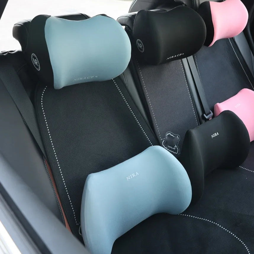 Stylowa poduszka z pianki memory to idealne wsparcie dla kręgosłupa i szyi podczas jazdy samochodem, pracy w biurze czy nauki.